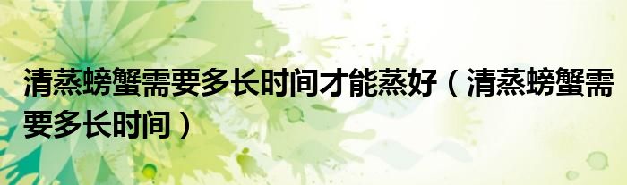 关于清蒸螃蟹需要多长时间才能蒸好,清蒸螃蟹需要多长时间这个很多人还不知道,今天菲菲来为大家解答以上的问题,现在让我们一起来看看吧!