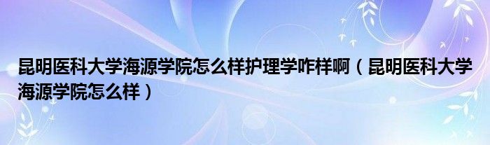 关于昆明医科大学海源学院怎么样护理学咋样啊,昆明医科大学海源学院怎么样这个很多人还不知道,今天菲菲来为大家解答以上的问题,现在让我们一起来看看吧!