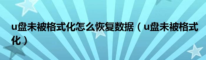大家好,小飞来为大家解答以上问题,u盘未被格式化怎么恢复数据,u盘未被格式化很多人还不知道,现在让我们一起来看看吧!