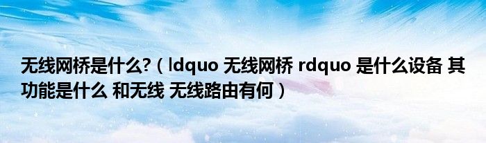 关于无线网桥是什么?,ldquo 无线网桥 rdquo 是什么设备 其功能是什么 和无线 无线路由有何这个很多人还不知道,今天菲菲来为大家解答以上的问题,现在让我们一起来看看吧!