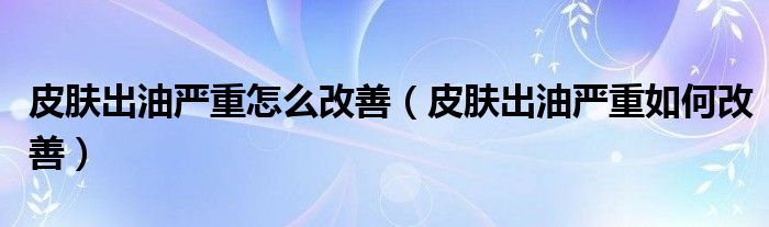 关于皮肤出油严重怎么改善,皮肤出油严重如何改善这个很多人还不知道,今天菲菲来为大家解答以上的问题,现在让我们一起来看看吧!