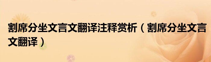 1、【词 目】 割席分坐 【发 音】 gē xí fēn zuò 【释 义】 席:坐席。