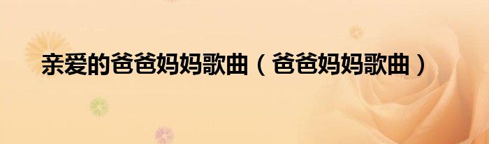 关于亲爱的爸爸妈妈歌曲,爸爸妈妈歌曲这个很多人还不知道,今天菲菲来为大家解答以上的问题,现在让我们一起来看看吧!