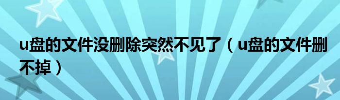 大家好,小飞来为大家解答以上问题,u盘的文件没删除突然不见了,u盘的文件删不掉很多人还不知道,现在让我们一起来看看吧!