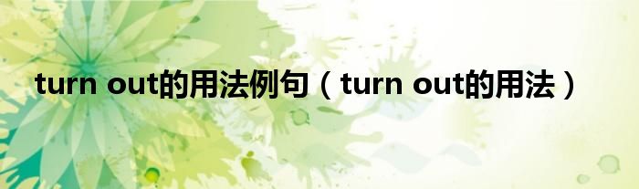 关于turn out的用法例句,turn out的用法这个很多人还不知道,今天菲菲来为大家解答以上的问题,现在让我们一起来看看吧!