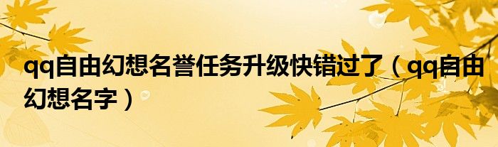 大家好,小飞来为大家解答以上问题,qq自由幻想名誉任务升级快错过了,qq自由幻想名字很多人还不知道,现在让我们一起来看看吧!