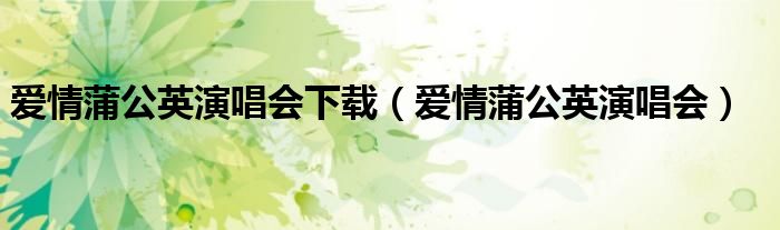 爱情蒲公英演唱会下载(爱情蒲公英演唱会)