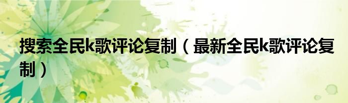 大家好,小晋来为大家解答以下问题,关于搜索全民k歌评论复制,最新全民k歌评论复制很多人还不知道,今天让我们一起来看看吧!
