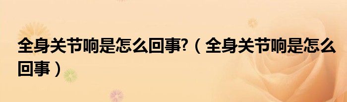 关于全身关节响是怎么回事?,全身关节响是怎么回事这个很多人还不知道,今天菲菲来为大家解答以上的问题,现在让我们一起来看看吧!