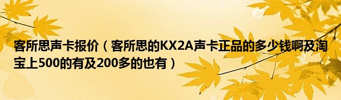 大家好,小常来为大家解答以上问题。客所思声卡报价,客所思的KX2A声卡正品的多少钱啊及淘宝上500的有及200多的也有很多人还不知道,现在让我们一起来看看吧!
