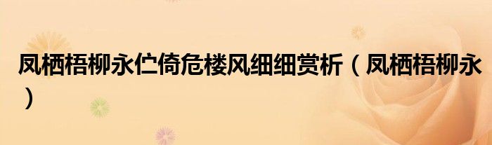 关于凤栖梧柳永伫倚危楼风细细赏析,凤栖梧柳永这个很多人还不知道,今天菲菲来为大家解答以上的问题,现在让我们一起来看看吧!
