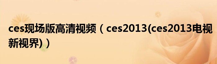 大家好,小常来为大家解答以上问题。ces现场版高清视频,ces2013(ces2013电视新视界)很多人还不知道,现在让我们一起来看看吧!