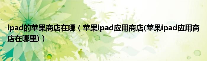 大家好,小常来为大家解答以上问题。ipad的苹果商店在哪,苹果ipad应用商店(苹果ipad应用商店在哪里)很多人还不知道,现在让我们一起来看看吧!