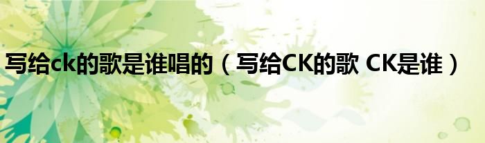 关于写给ck的歌是谁唱的,写给CK的歌 CK是谁这个很多人还不知道,今天菲菲来为大家解答以上的问题,现在让我们一起来看看吧!