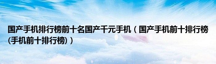 国产手机排行榜前十名国产千元手机(国产手机前十排行榜(手机前十排行榜))