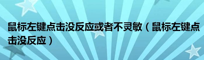 关于鼠标左键点击没反应或者不灵敏,鼠标左键点击没反应这个很多人还不知道,今天菲菲来为大家解答以上的问题,现在让我们一起来看看吧!