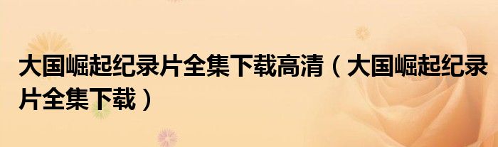 关于大国崛起纪录片全集下载高清,大国崛起纪录片全集下载这个很多人还不知道,今天菲菲来为大家解答以上的问题,现在让我们一起来看看吧!