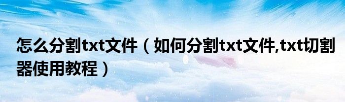 怎么分割txt文件(如何分割txt文件,txt切割器使用教程)