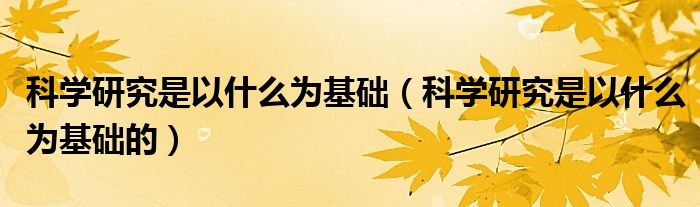 科学研究是以什么为基础,科学研究是以什么为基础的这个很多人还不知道,小飞来为大家解答以上的问题。现在让我们一起来看看吧!