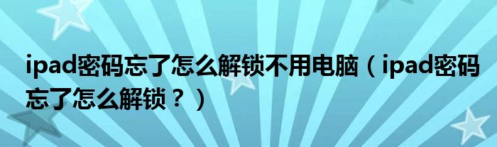 ipad密码忘了怎么解锁不用电脑(ipad密码忘了怎么解锁?)