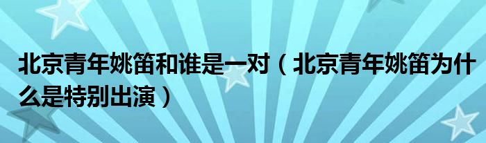 北京青年姚笛和谁是一对,北京青年姚笛为什么是特别出演这个很多人还不知道,小飞来为大家解答以上的问题。现在让我们一起来看看吧!