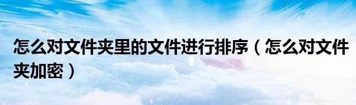 大家好,小飞来为大家解答以上问题,怎么对文件夹里的文件进行排序,怎么对文件夹加密很多人还不知道,现在让我们一起来看看吧!