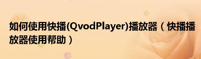 如何使用快播(QvodPlayer)播放器(快播播放器使用帮助)