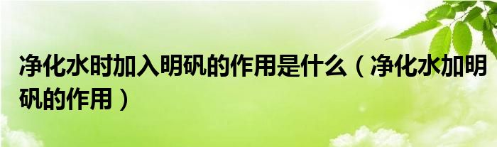 关于净化水时加入明矾的作用是什么,净化水加明矾的作用这个很多人还不知道,今天菲菲来为大家解答以上的问题,现在让我们一起来看看吧!