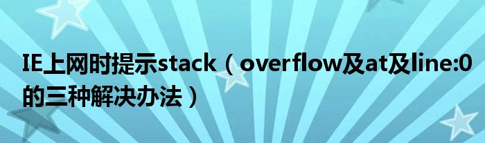 大家好,今天小悦来为大家解答以上问题。IE上网时提示stack,overflow及at及line:0的三种解决办法很多人还不知道,现在让我们一起来看看吧!