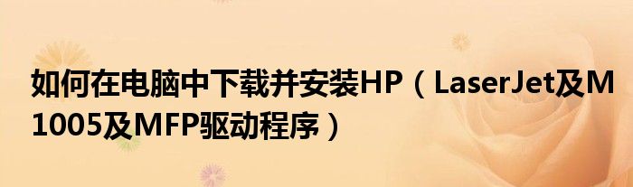 大家好,今天小悦来为大家解答以上问题。如何在电脑中下载并安装HP,LaserJet及M1005及MFP驱动程序很多人还不知道,现在让我们一起来看看吧!