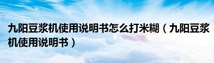 大家好,慧慧来为大家解答以上问题,九阳豆浆机使用说明书怎么打米糊,九阳豆浆机使用说明书很多人还不知道,现在让我们一起来看看吧!