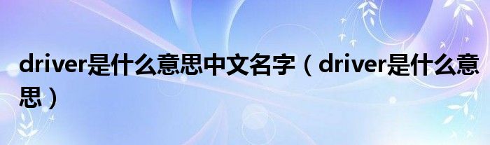 大家好,慧慧来为大家解答以上问题,driver是什么意思中文名字,driver是什么意思很多人还不知道,现在让我们一起来看看吧!