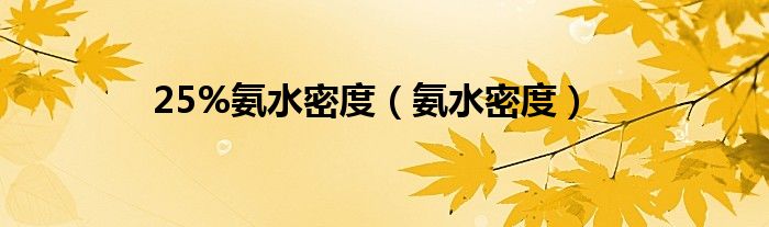 关于25%氨水密度,氨水密度这个很多人还不知道,今天菲菲来为大家解答以上的问题,现在让我们一起来看看吧!
