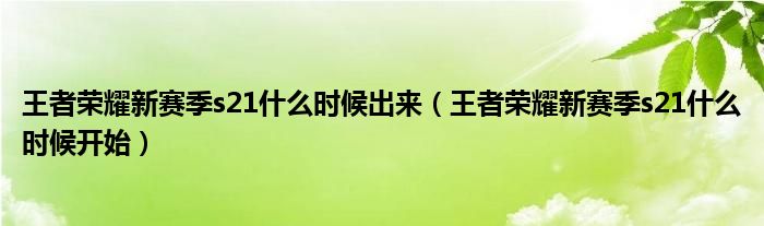 1、王者荣耀S21赛季什么时候开始?王者荣耀s20即将结束。目前s21的部分消息也已经公布。很多朋友不知道S21赛季的开始时间,很多玩家也不知道赛季的结束时间。下面来看看S21赛季的具体开场时间。我希望你喜欢它。