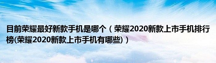 大家好,小常来为大家解答以上问题。目前荣耀最好新款手机是哪个,荣耀2020新款上市手机排行榜(荣耀2020新款上市手机有哪些)很多人还不知道,现在让我们一起来看看吧!