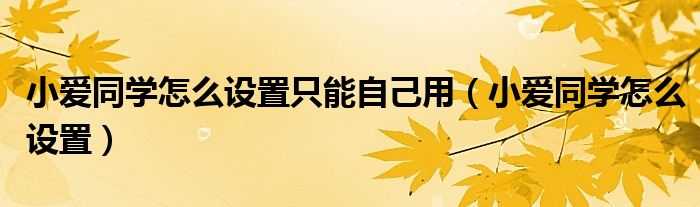 大家好,小晋来为大家解答以下问题,关于小爱同学怎么设置只能自己用,小爱同学怎么设置很多人还不知道,今天让我们一起来看看吧!