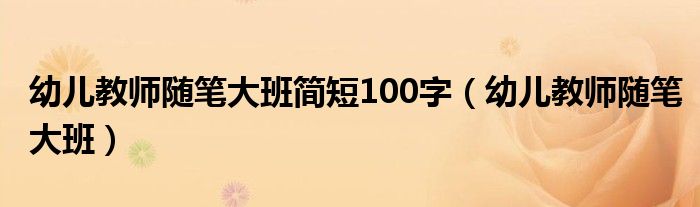 关于幼儿教师随笔大班简短100字,幼儿教师随笔大班这个很多人还不知道,今天菲菲来为大家解答以上的问题,现在让我们一起来看看吧!