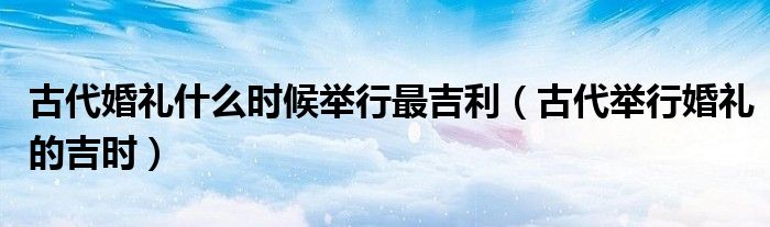 大家好,小晋来为大家解答以下问题,关于古代婚礼什么时候举行最吉利,古代举行婚礼的吉时很多人还不知道,今天让我们一起来看看吧!