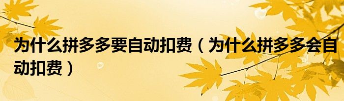 大家好,跳跳为你解答以上问题。为什么拼多多要自动扣费,为什么拼多多会自动扣费这个问题很多人还不知道,现在让我们一起来看看吧!