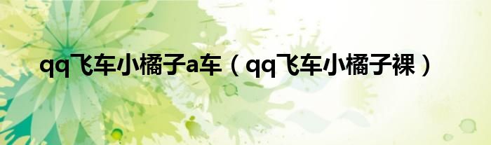 关于qq飞车小橘子a车,qq飞车小橘子裸这个很多人还不知道,今天菲菲来为大家解答以上的问题,现在让我们一起来看看吧!