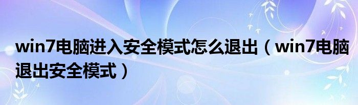 大家好,小晋来为大家解答以下问题,关于win7电脑进入安全模式怎么退出,win7电脑退出安全模式很多人还不知道,今天让我们一起来看看吧!