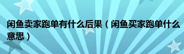 大家好,跳跳为你解答以上问题。闲鱼卖家跑单有什么后果,闲鱼买家跑单什么意思这个问题很多人还不知道,现在让我们一起来看看吧!