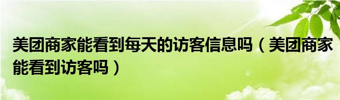 大家好,跳跳为你解答以上问题。美团商家能看到每天的访客信息吗,美团商家能看到访客吗这个问题很多人还不知道,现在让我们一起来看看吧!