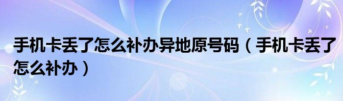 大家好,慧慧来为大家解答以上问题,手机卡丢了怎么补办异地原号码,手机卡丢了怎么补办很多人还不知道,现在让我们一起来看看吧!
