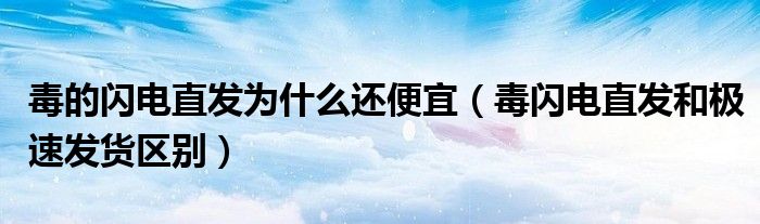 大家好,跳跳为你解答以上问题。毒的闪电直发为什么还便宜,毒闪电直发和极速发货区别这个问题很多人还不知道,现在让我们一起来看看吧!