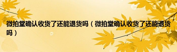 大家好,跳跳为你解答以上问题。微拍堂确认收货了还能退货吗,微拍堂确认收货了还能退货吗这个问题很多人还不知道,现在让我们一起来看看吧!