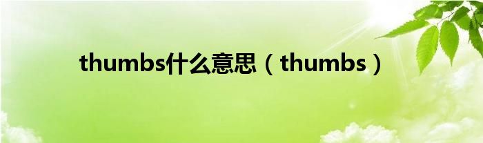 大家好,慧慧来为大家解答以上问题,thumbs什么意思,thumbs很多人还不知道,现在让我们一起来看看吧!
