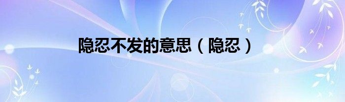 关于隐忍不发的意思,隐忍这个很多人还不知道,今天菲菲来为大家解答以上的问题,现在让我们一起来看看吧!