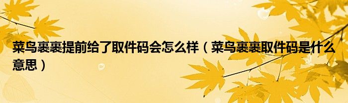 菜鸟裹裹提前给了取件码会怎么样(菜鸟裹裹取件码是什么意思)