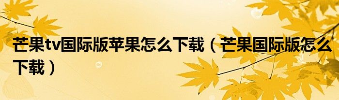 芒果tv国际版苹果怎么下载(芒果国际版怎么下载)